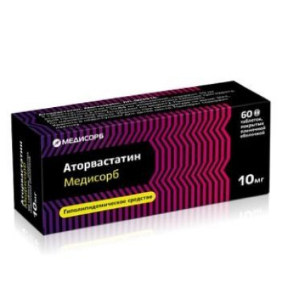 АТОРВАСТАТИН-МЕДИСОРБ 10МГ. №60 ТАБ. П/П/О БЛИСТ. /МЕДИСОРБ/