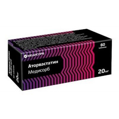 АТОРВАСТАТИН-МЕДИСОРБ 20МГ. №60 ТАБ. П/П/О БЛИСТ. /МЕДИСОРБ/