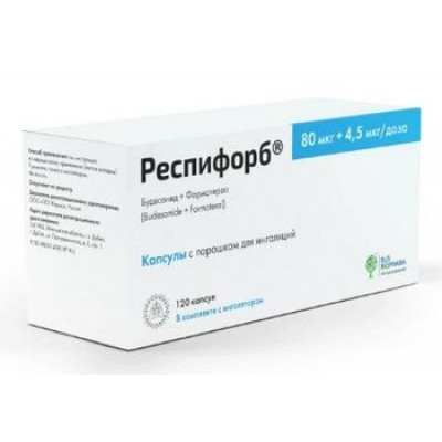 Респифорб, 80 мкг + 4,5 мкг/доза, капсулы с порошком для ингаляций показан при: бронхиальной астме для достижения общего контроля заболевания, включая профилактику и облегчение симптомов, и снижение риска обострений.