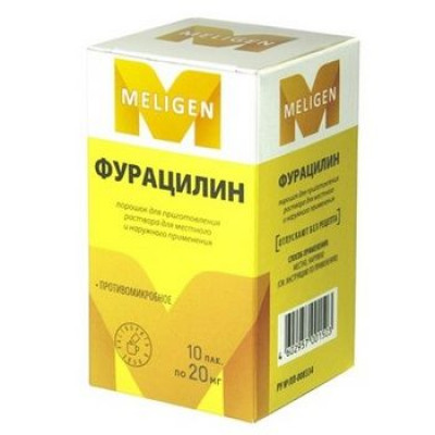 ФУРАЦИЛИН 20МГ. №10 ПОР. Д/Р-РА Д/НАРУЖ.ПРИМ. ПАК. /МЕЛИГЕН/