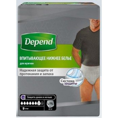 ДЕПЕНД ТРУСЫ-ПОДГУЗНИКИ Д/МУЖ. L/XL №9 БЕЛЬЕ ВПИТ. [DEPEND]