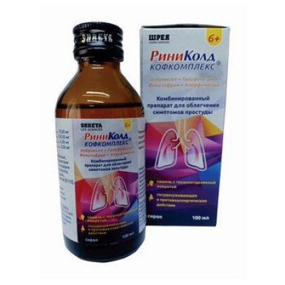Риниколд КОФКОМПЛЕКС® сироп - комбинированный препарат, входящие в его состав гвайфенезин и амброксол снижают вязкость бронхиального секрета и облегчают отхаркивание. Хлорфенамина малеат оказывает противоаллергическое действие: устраняет слезотечение, зуд в глазах и носу. Фенилэфрина гидрохлорид оказывает сосудосуживающее действие, уменьшает отечность и гиперемию слизистых оболочек верхних отделов дыхательных путей и придаточных пазух.