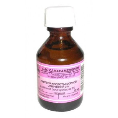 БОРНАЯ К-ТА 3% 25МЛ. СПИРТ. Р-Р Д/МЕСТ.ПРИМ. ФЛ. /САМАРАМЕДПРОМ/