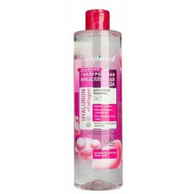 Compliment энзимная гиалуроновая мицеллярная вода для снятия макияжа 3 в 1. Гиалуроновая вода деликатно очищает кожу, стирая следы усталости. Благодаря энзимам открывает клеткам доступ к полноценному кислородообмену и насыщению влагой. АHA кислоты очищают поры и выравнивают микрорельеф, передают коже полезные биоактивные вещества, которые укрепляют ее защитный слой, способствуют сохранению упругости и ровного тона. Коллаген придает коже мягкость, способствует улучшению рельефа кожи и профилактике преждевременного старения и сухости. Альфа-липоевая кислота действует как антиоксидант, замедляя окислительные процессы, провоцирующие старение и сохраняя молодость кожи.