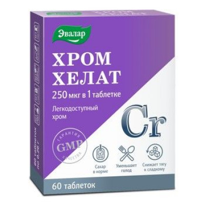 ХРОМ ХЕЛАТ ЭВАЛАР 250МКГ. 260МГ. №60 ТАБ. /ЭВАЛАР/