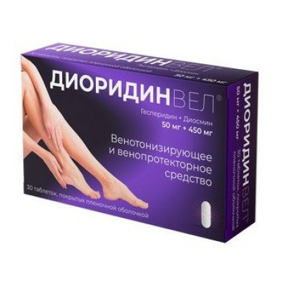 Механизм действия: Препарат Диоридинвел обладает венотонизирующим и ангиопротективным свойствами. Препарат уменьшает растяжимость вен и венозный застой, снижает проницаемость капилляров и повышает их резистентность. Результаты клинических исследований подтверждают фармакологическую активность препарата в отношении показателей венозной гемодинамики. Фармакодинамические эффекты: Статистически достоверный дозозависимый эффект был продемонстрирован для следующих венозных плетизмографических параметров: венозной емкости, венозной растяжимости и времени венозного опорожнения. Оптимальное соотношение «дозаэффект» наблюдается при приеме 2 таблеток. Препарат повышает венозный тонус: методом венозной окклюзионной плетизмографии было показано уменьшение времени венозного опорожнения. У пациентов с признаками выраженного нарушения микроциркуляции, после лечения очищенной микронизированной флавоноидной фракцией отмечается статистически значимое повышение резистентности капилляров по сравнению с плацебо, при оценке методом ангиостереометрии. Доказана терапевтическая эффективность очищенной микронизированной флавоноидной фракции в лечении хронических заболеваний вен нижних конечностей, а также в лечении геморроя.